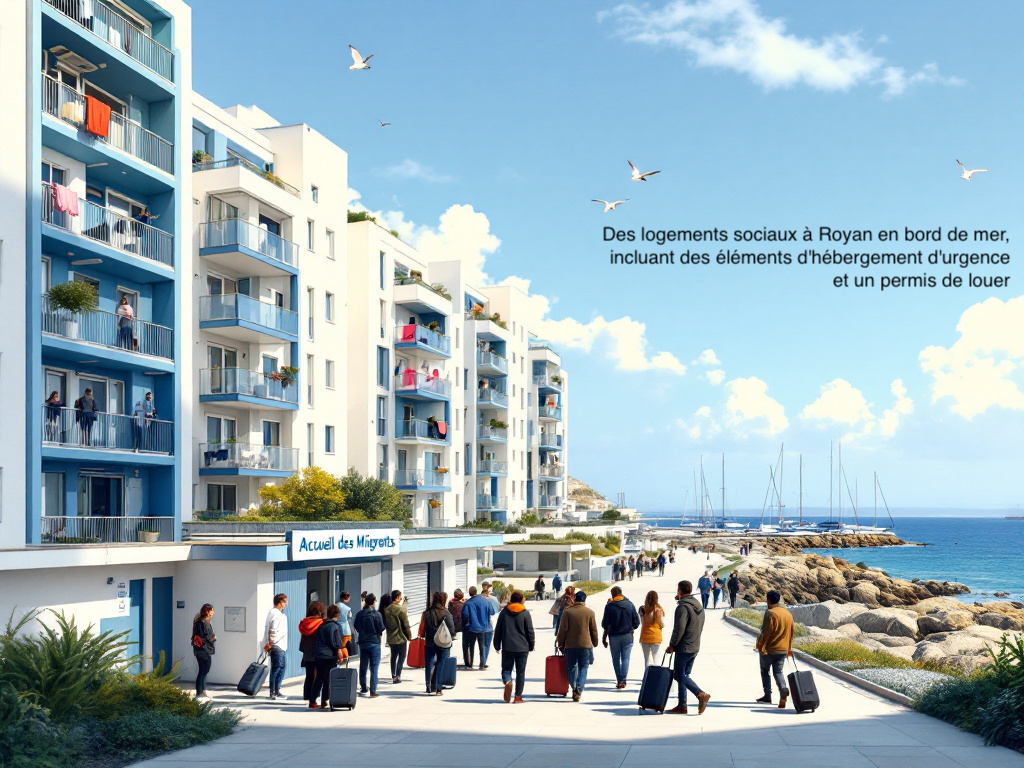 Pour la première photo, nous avions demandé : "Des logements sociaux à Royan en bord de mer, incluant des éléments d’hébergement d’urgence et un permis de louer". Vous noterez que dans un monde virtuel, le logement social peut avoir vue sur mer... Une idée pour Foncillon ?!