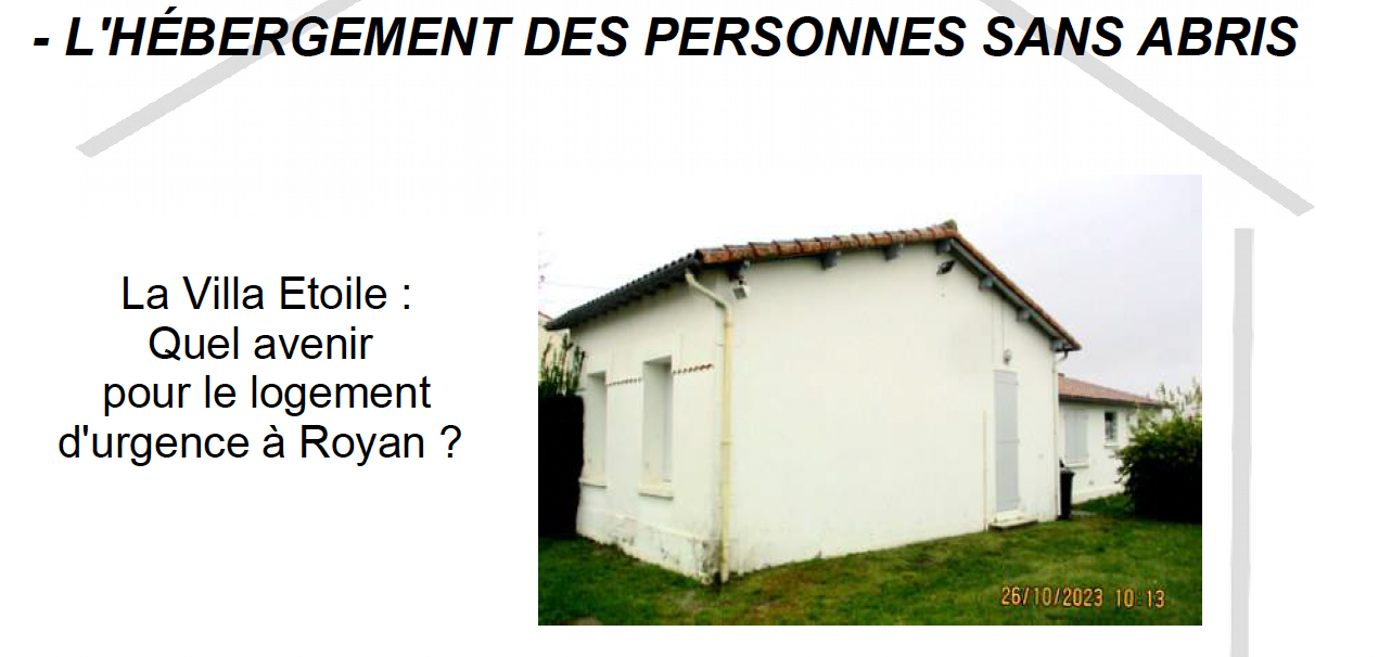 QUESTION : l’avenir de la Villa étoile, le seul accueil de nuit sur Royan, nous préoccupe aussi, sera-t-elle maintenue ?